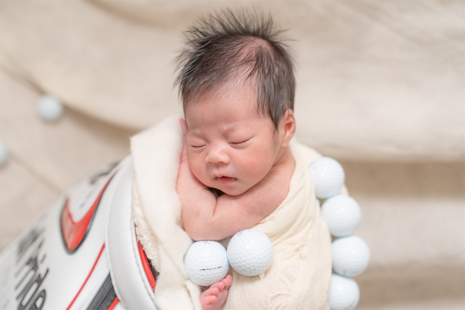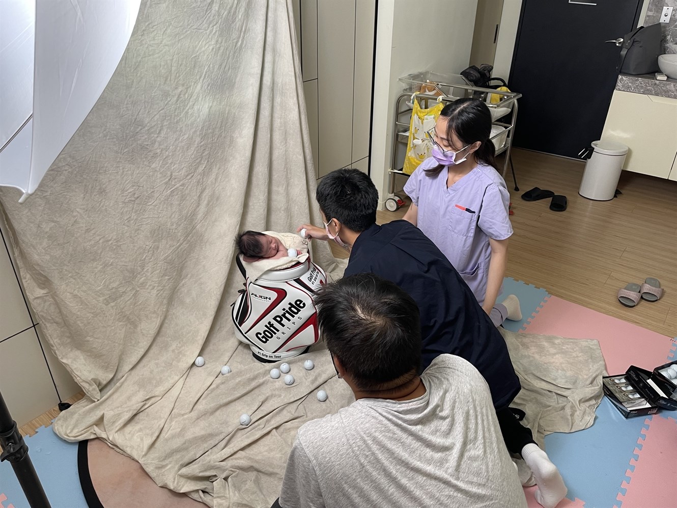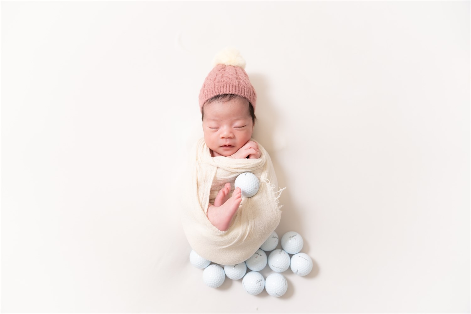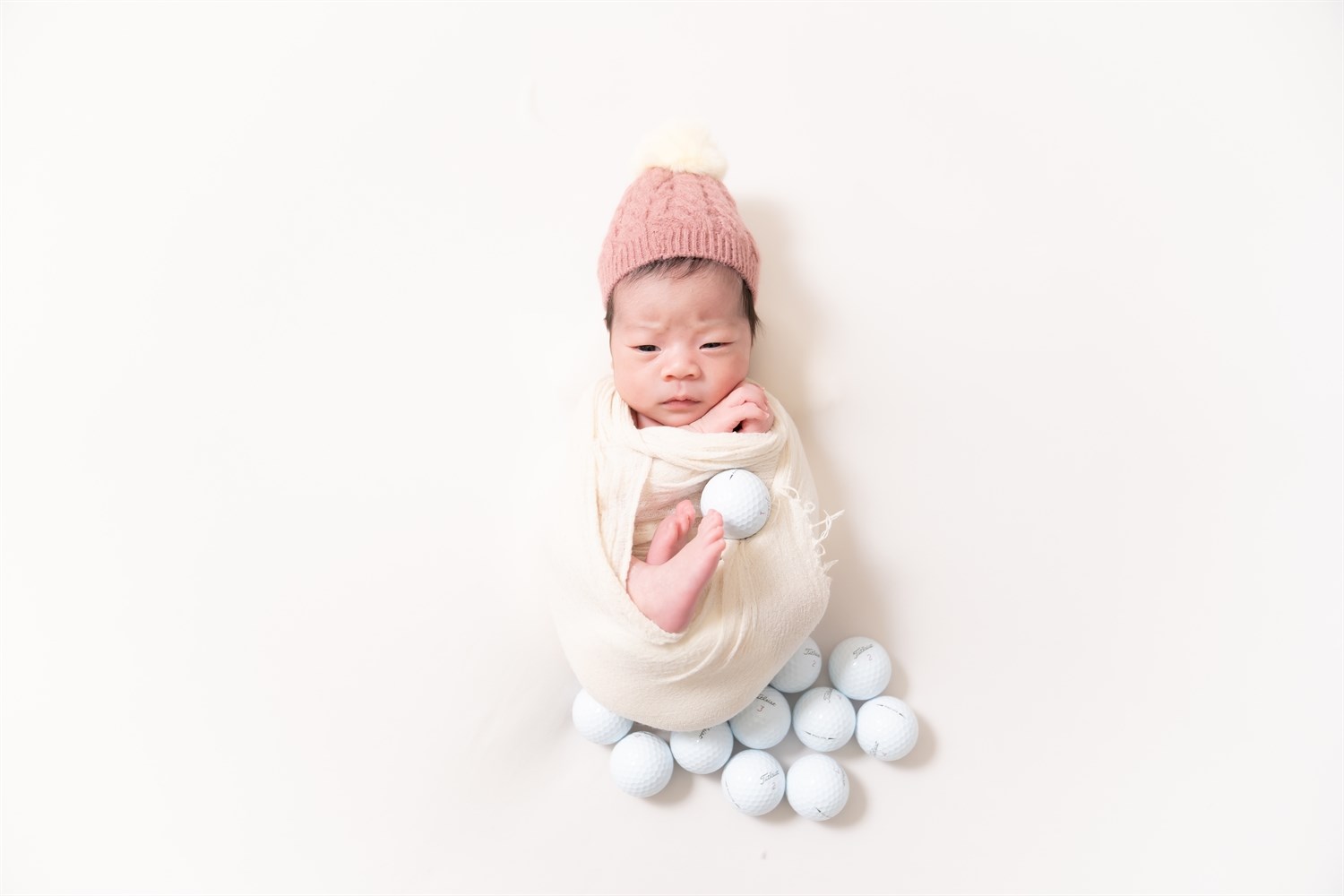 名字還沒取的 MAYA, 現在綽號是鼻涕. 專業的攝影師跟溫柔的護士姊姊幫 MAYA 在月子中心完成了第一次的時裝秀. 爸媽堅持要孩子跟球具一起拍照, 也不問問女兒有沒有興趣.