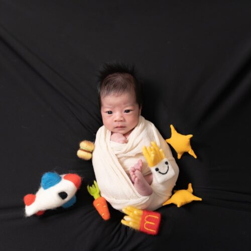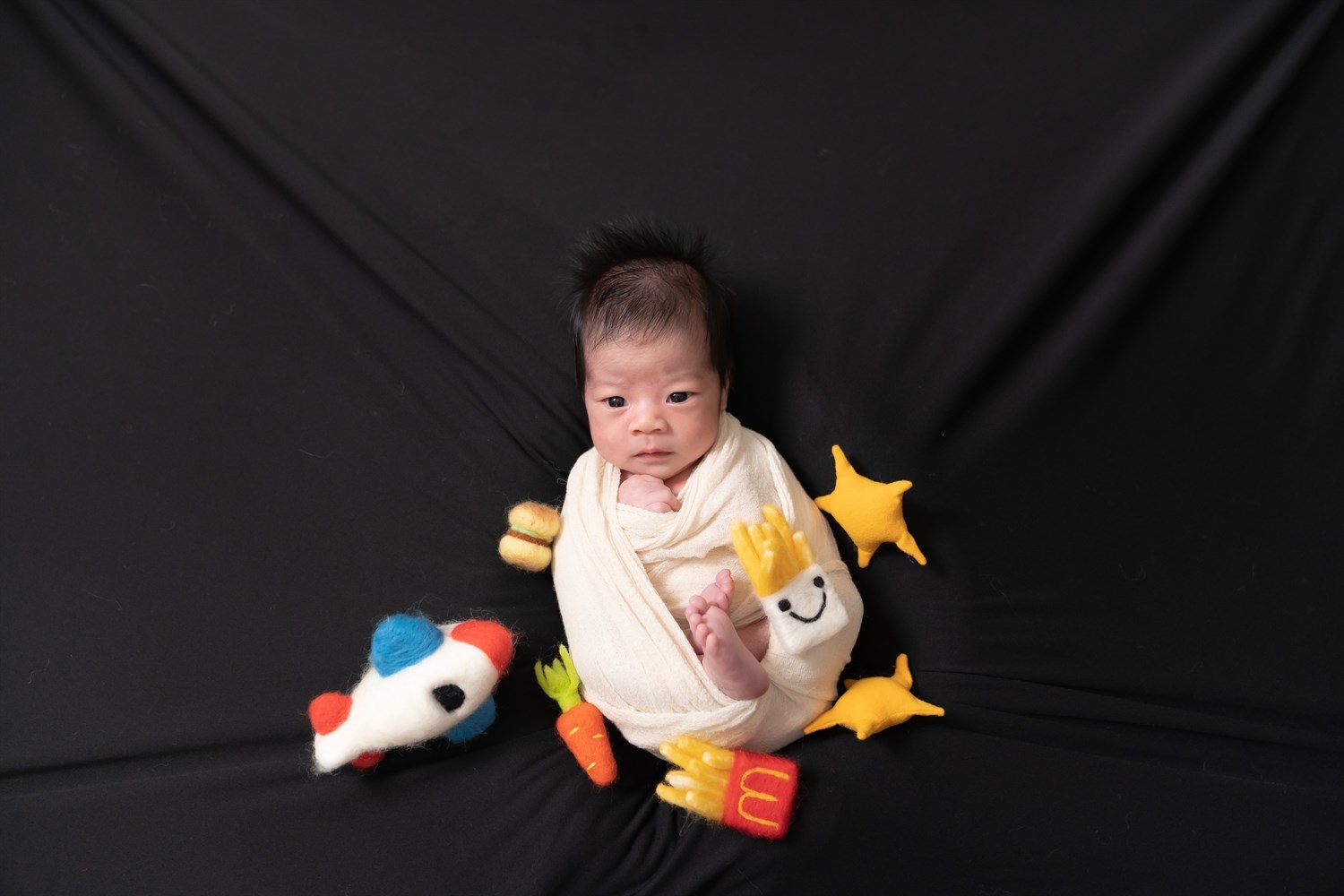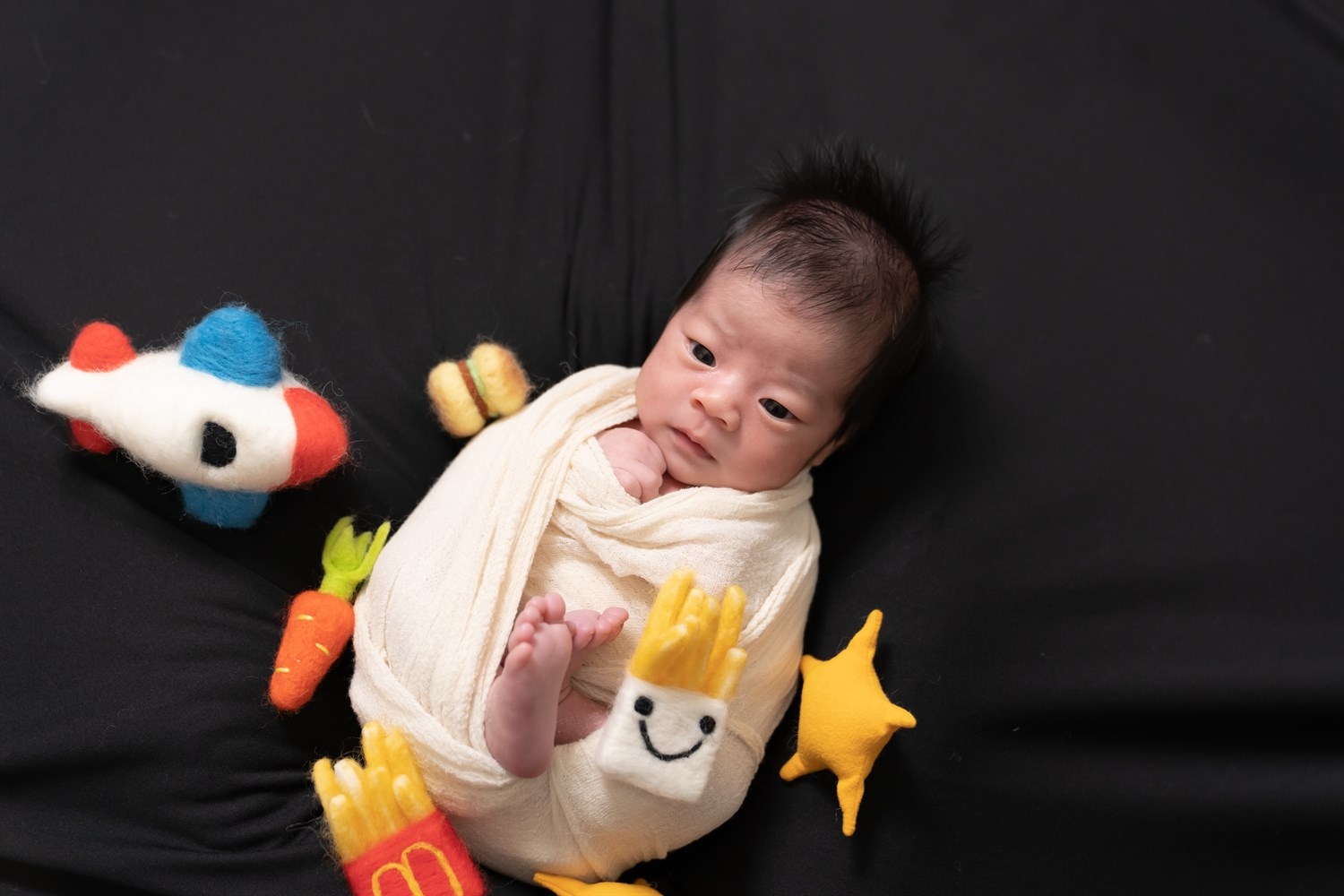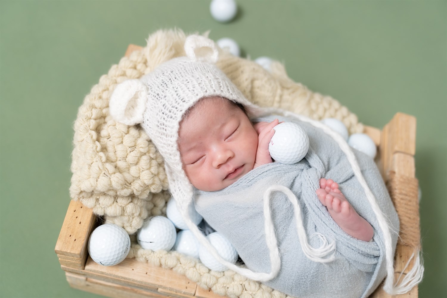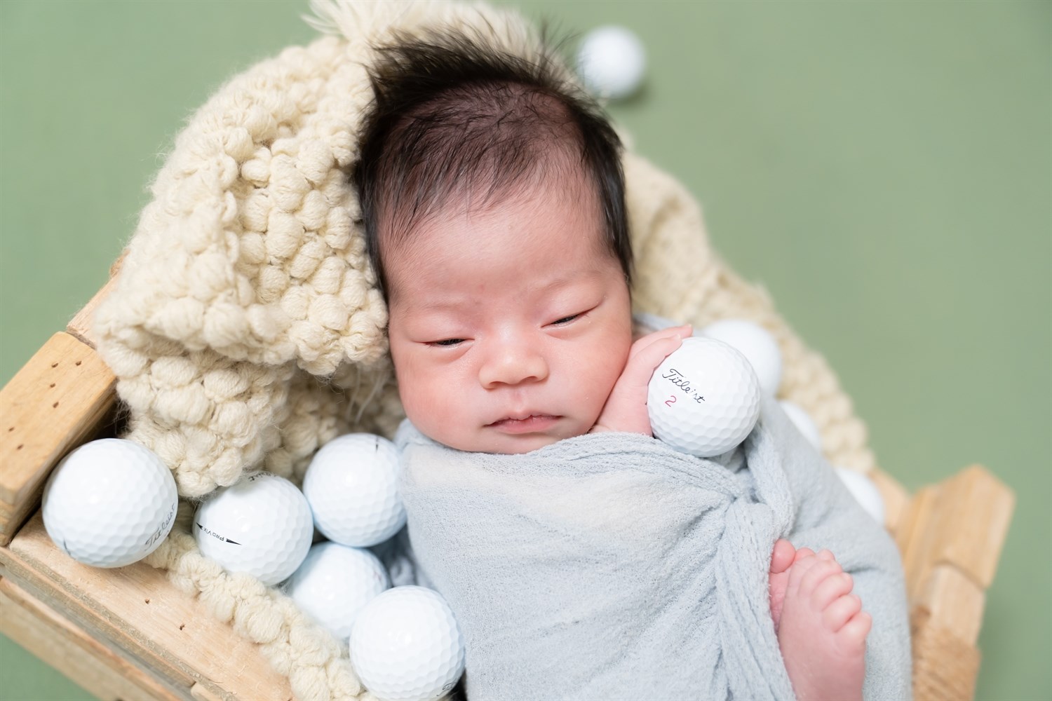 名字還沒取的 MAYA, 現在綽號是鼻涕. 專業的攝影師跟溫柔的護士姊姊幫 MAYA 在月子中心完成了第一次的時裝秀. 爸媽堅持要孩子跟球具一起拍照, 也不問問女兒有沒有興趣.